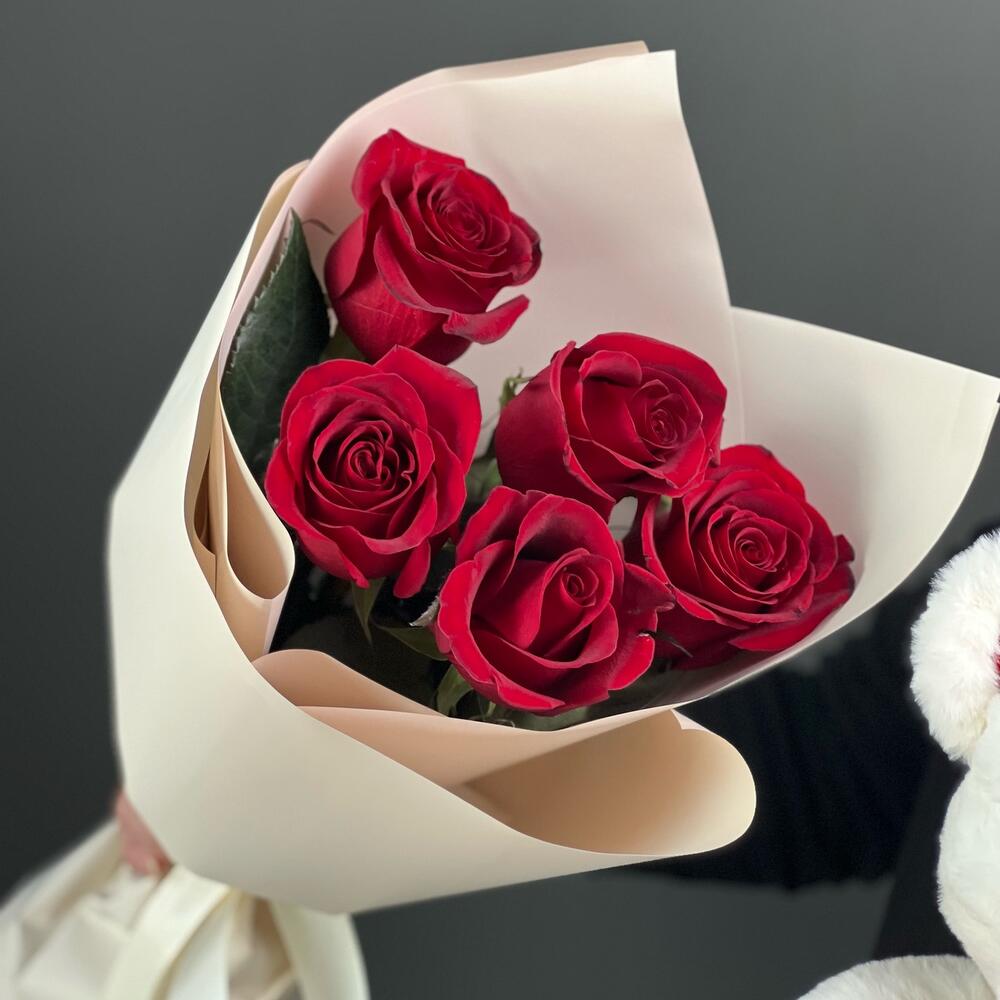 Красные розы и мягкая игрушка мишка ️ в Череповце
