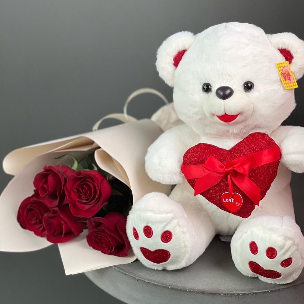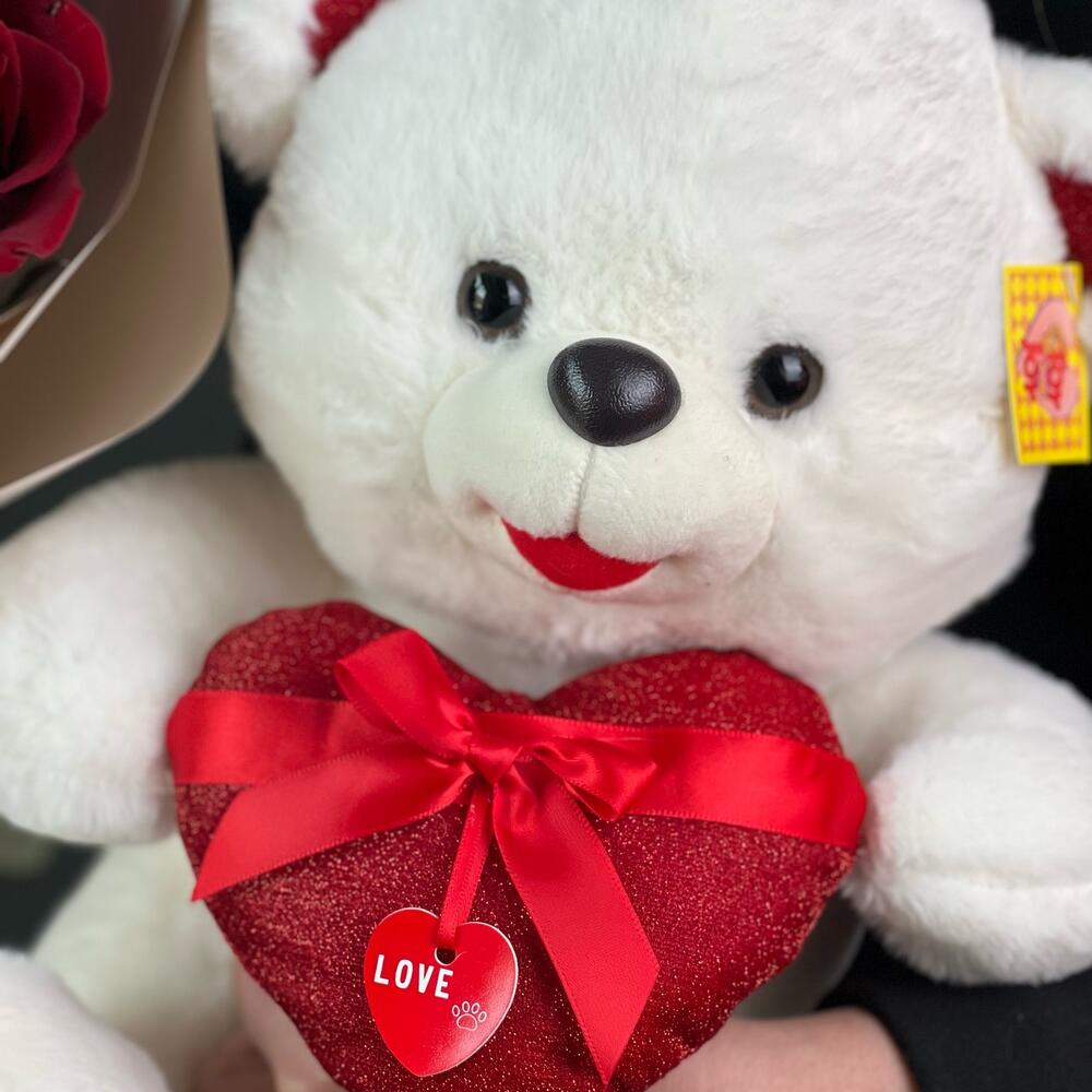 Белый мягкий мишка с красным сердечком и надписью Love расскажет получателю о ваших самых светлых чувствах 🥰❣️